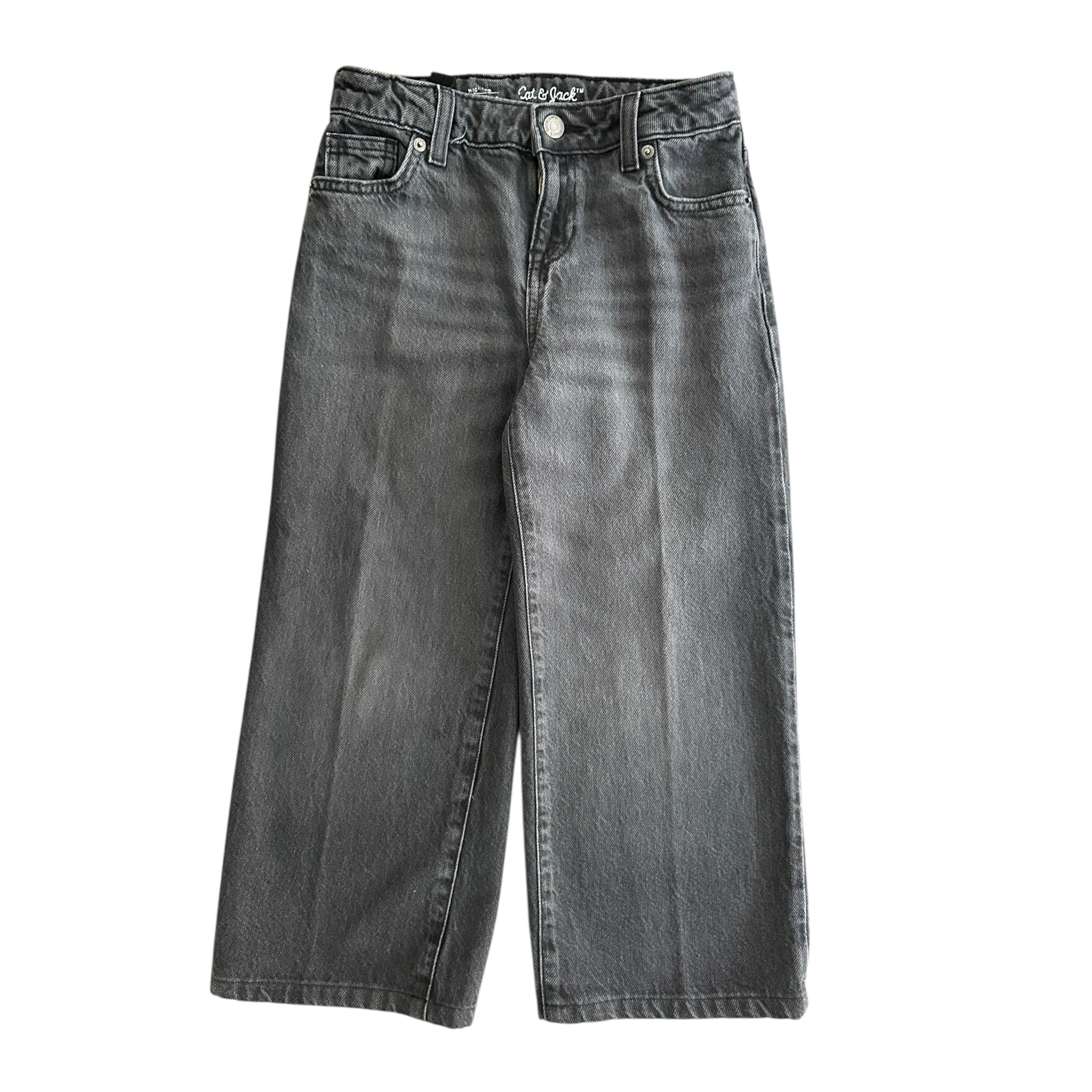 Jeans wide leg en lona gris con elástico interior ajustable.
