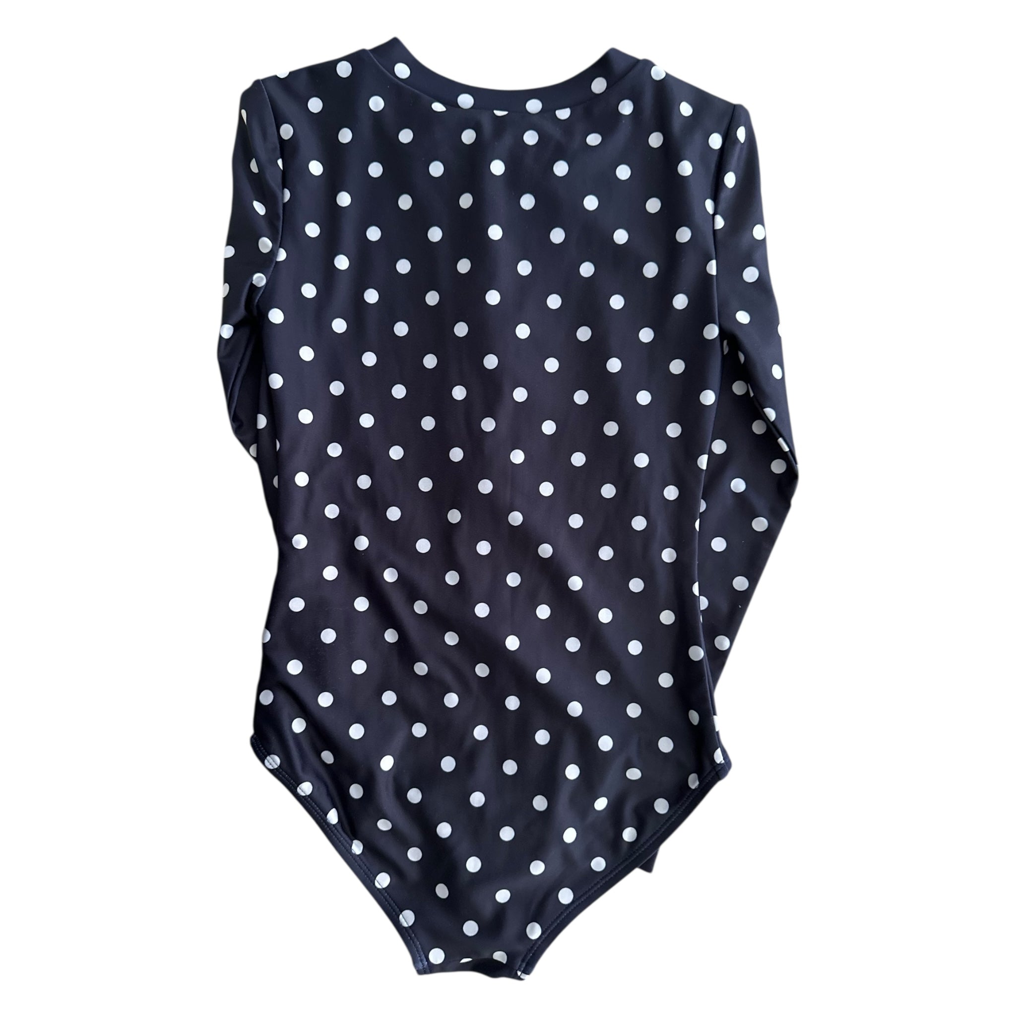 Calzoneta de manga larga azul marino con puntos blancos y zipper en el pecho.