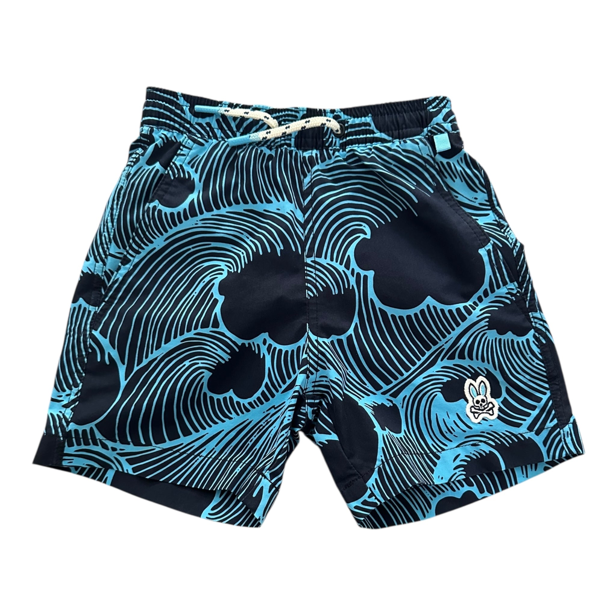 Calzoneta de short negra con estampado turquesa y logo a un costado