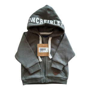Sudadero Verde oliva con zipper al frente y gorro con INCREIBLE! En blanco